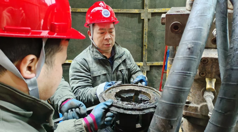 吕敬尊深知“打铁必须自身硬”,先后在中国地质大学(武汉)完成专科、本科深造,还利用业余时间参加十余次专业技术培训,将理论知识与工程实践深度融合,成长为精通全液压钻机操作、复杂地层钻进、设备运维的复合型人才。他不止步于完成实际工作量,更专注于技术创新,瞄准钻探领域“卡脖子”问题刻苦钻研,带领团队攻克复杂地层钻进难题,创下30天完成900米深孔施工的全国同机型施工纪录。近五年来,他作为主要发明人获批发明专利和实用新型专利13项,创新研发的“花瓣式岩心爪”将取心率提升13%,优化泥浆配方将行业成井率从不到50%提升至100%,为业务发展贡献了钻探力量。