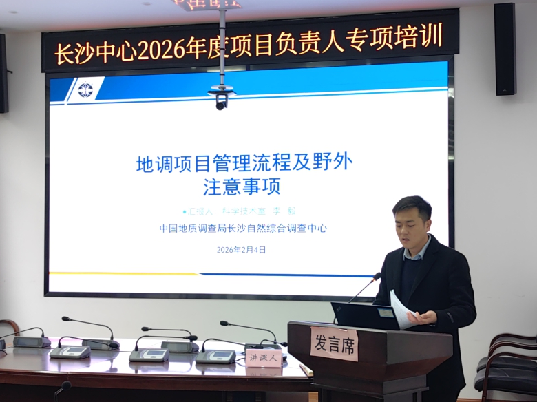 为深入贯彻落实地质调查项目管理工作要求,强化项目负责人履职能力,系统防范廉政风险,2026年2月4日至5日,中国地质调查局长沙自然资源综合调查中心(简称“长沙中心”)组织开展2026年项目负责人专项培训。长沙中心领导、项目(副)负责人及技术骨干共60余人参加。