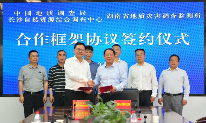 5月8日,中国地质调查局长沙自然资源综合调查中心(简称“长沙中心”)与湖南省地质灾害调查监测所(简称“地灾所”)签订合作框架协议。长沙中心主任徐宏根、地灾所所长刘拥军分别代表双方签字,长沙中心党委书记丁云磊、地灾所党委书记皇甫悦星等双方领导见证签约仪式。